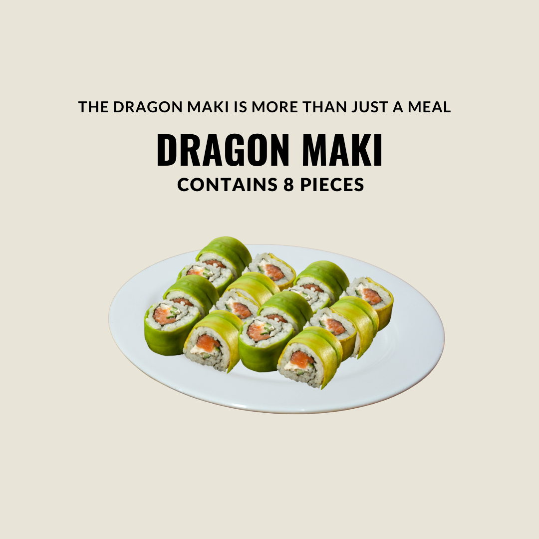 The Dragon Maki is more than just a meal; it's an artistic expression, a conversation starter, and a culinary adventure all rolled into one. This masterpiece is then topped with thin slices of avocado, creating the illusion of dragon scales.